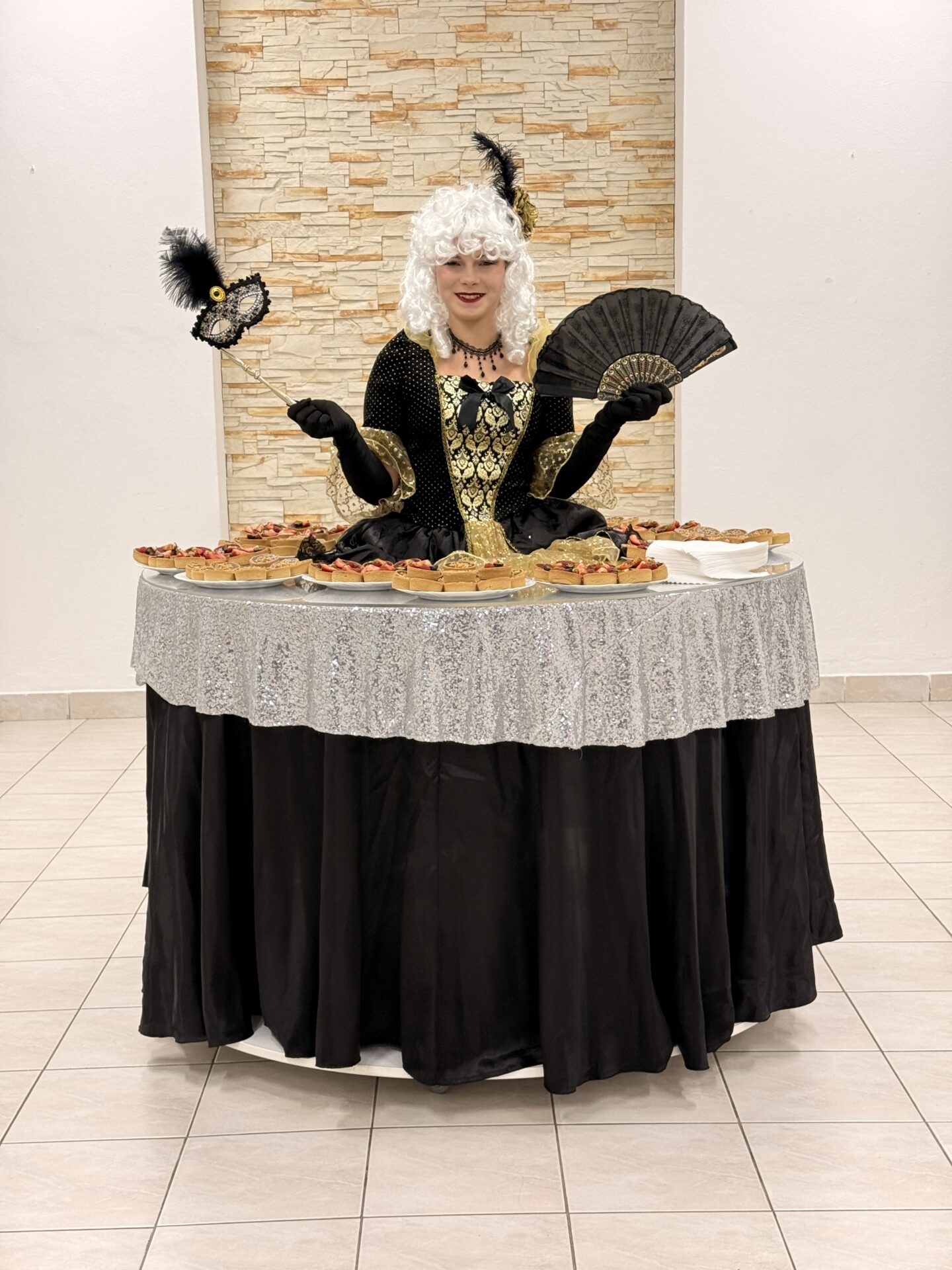 Klasické stolíky, rad hostí a tradičné podávanie jedla dnes už nestačia. Prvý dojem rozhoduje – a práve SHOW TABLE (živý stôl) dokáže na evente zaujať okamžite po vstupe do priestoru. Predstavte si, že vás privíta elegantná postava v tematickom kostýme, ktorá s úsmevom ponúka welcome drink a zároveň je súčasťou celého vizuálneho zážitku.